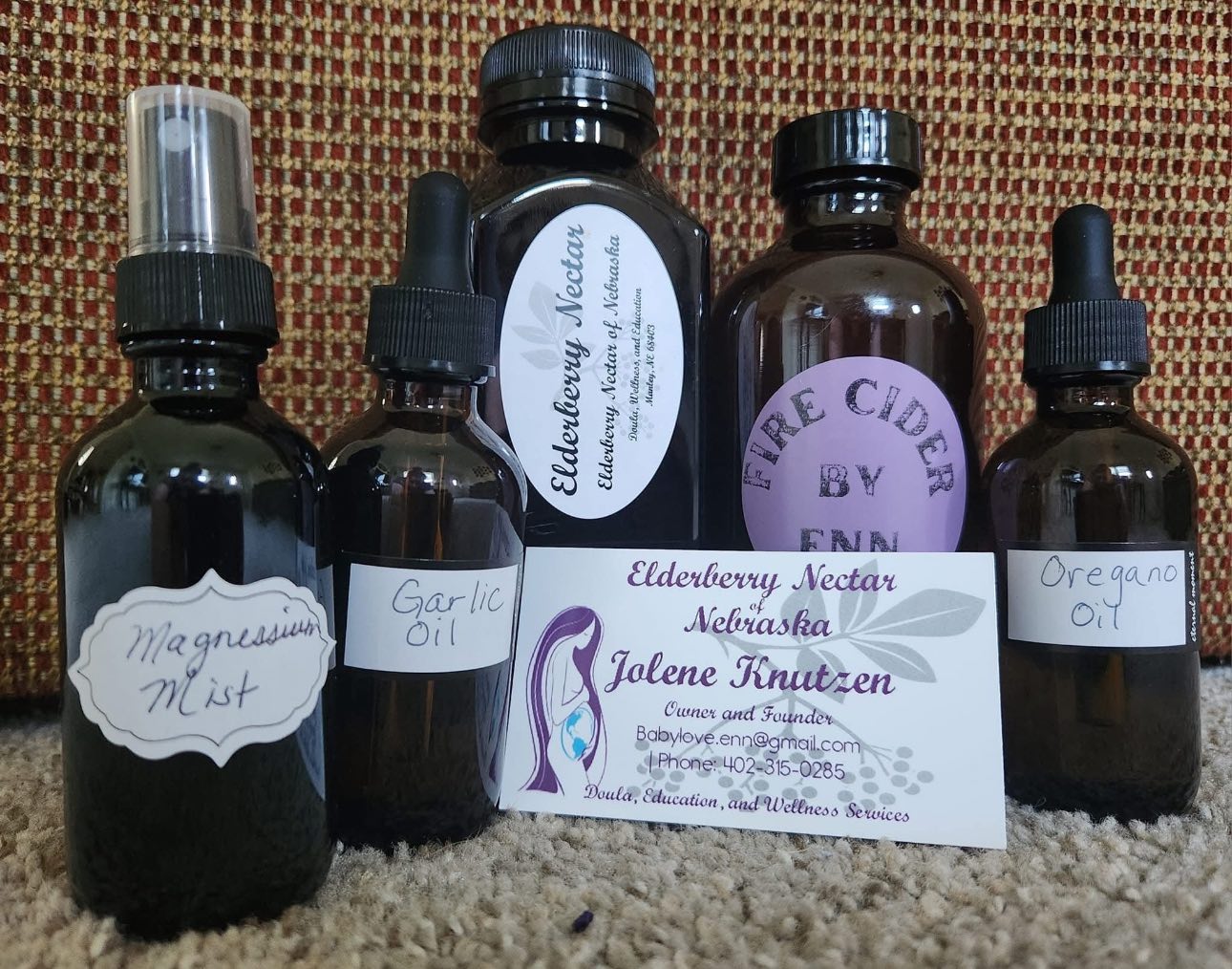I handcraft every batch of elderberry syrup, fire cider, and wellness oils right here in Nebraska. As a doula and mother, I put my family's care into every bottle I make for yours.